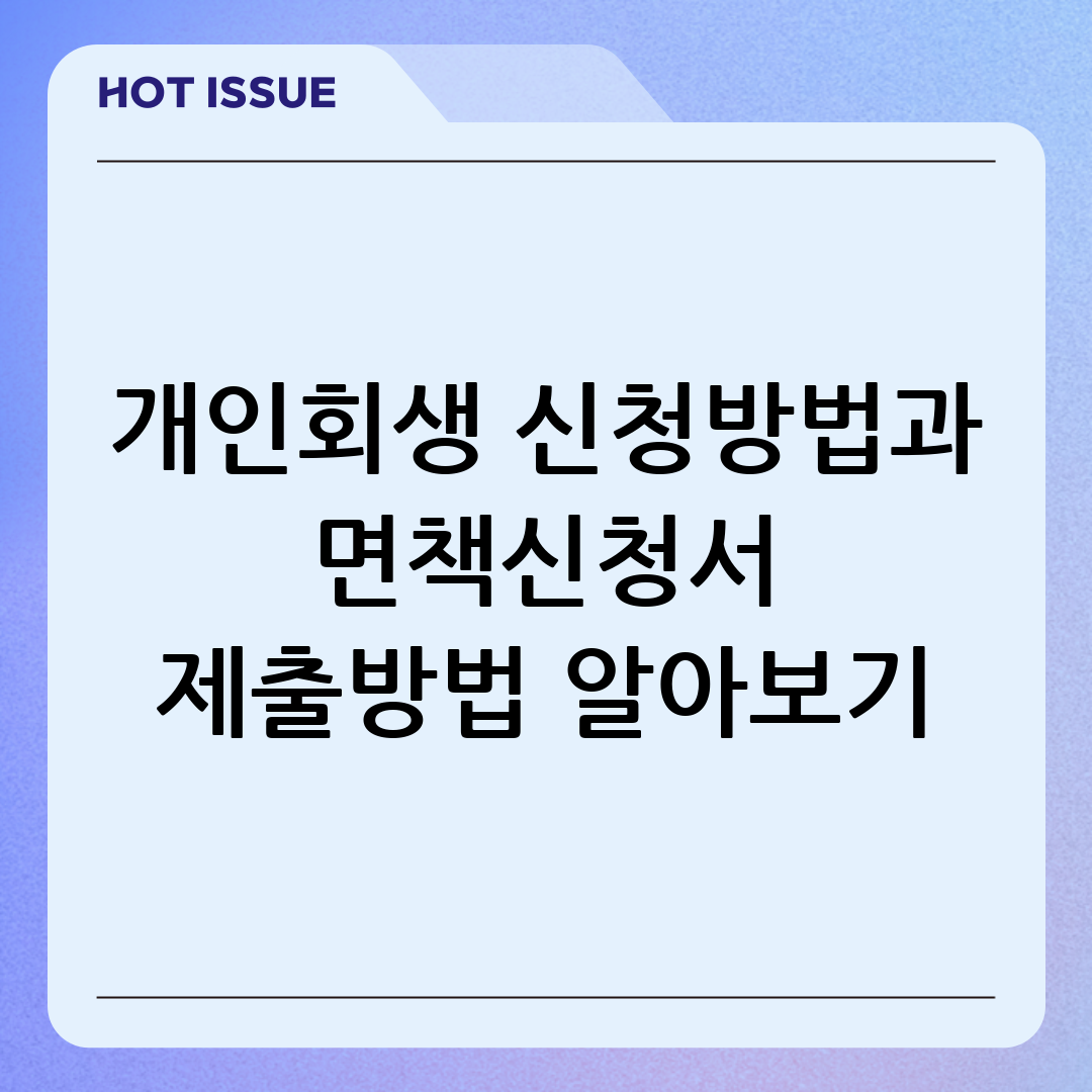 개인회생은 경제적으로 어려움을 겪는 개인 채무자가 법원의 도움을 받아 채무를 조정하고 갱생할 수 있도록 돕는 제도입니다. 복잡한 절차와 까다로운 조건 때문에 많은 분들이 어려움을 느끼지만, 꼼꼼히 준비하면 충분히 성공할 수 있습니다. 이 글에서는 개인회생 신청방법과 면책신청서 제출방법에 대해 자세히 알아보겠습니다.