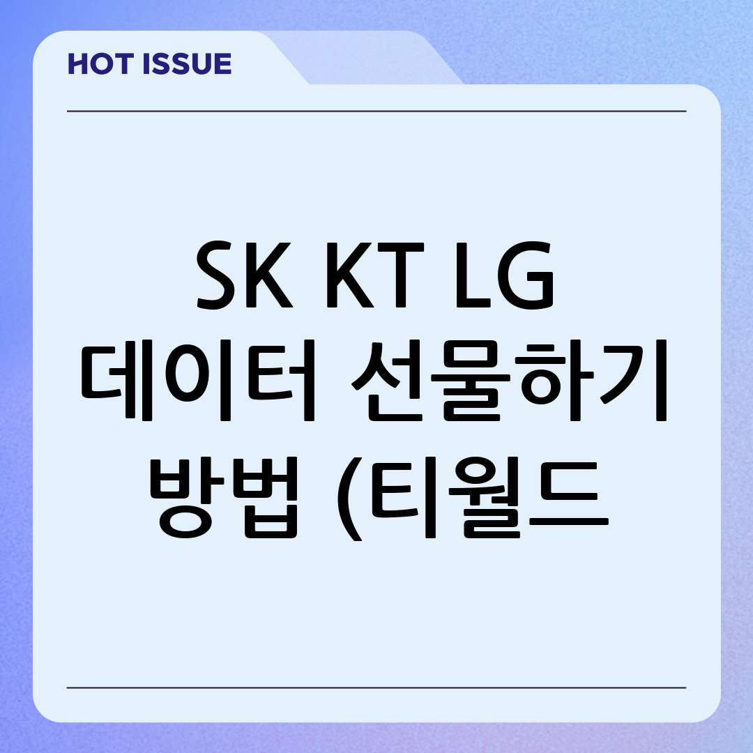 데이터 선물하기는 통신사별로 제공하는 유용한 기능입니다. 가족, 친구, 연인에게 남는 데이터를 간편하게 나눠줄 수 있어, 데이터 부족으로 어려움을 겪는 사람들에게 큰 도움이 됩니다. 이 글에서는 SK텔레콤(티월드), KT(케이티), LG유플러스의 데이터 선물하기 방법을 상세히 안내하고, 각 통신사별 특징과 유의사항을 꼼꼼하게 정리했습니다. 데이터 선물하기를 통해 소중한 사람들과 데이터를 나누고, 통신비를 절약하는 방법을 알아보세요.