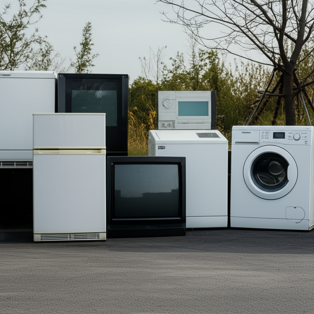 - 대형 가전제품: 냉장고, 세탁기, 에어컨, TV (브라운관/LCD/LED), 김치냉장고, 냉동고, 전기오븐레인지, 식기세척기, 공기청정기, 제습기, 정수기, 가습기, 전기밥솥, 전자레인지
