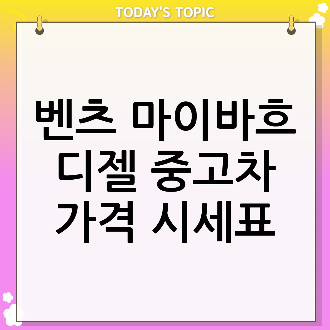 현재 벤츠 마이바흐 디젤 모델의 중고차 가격은 여러 요인에 따라 다르지만, 일반적으로 차종 및 연식, 주행거리 등에 따라 어느 정도의 시세가 있습니다. 아래는 2023년 시세표를 참고하여 만든 간단한 예시입니다: